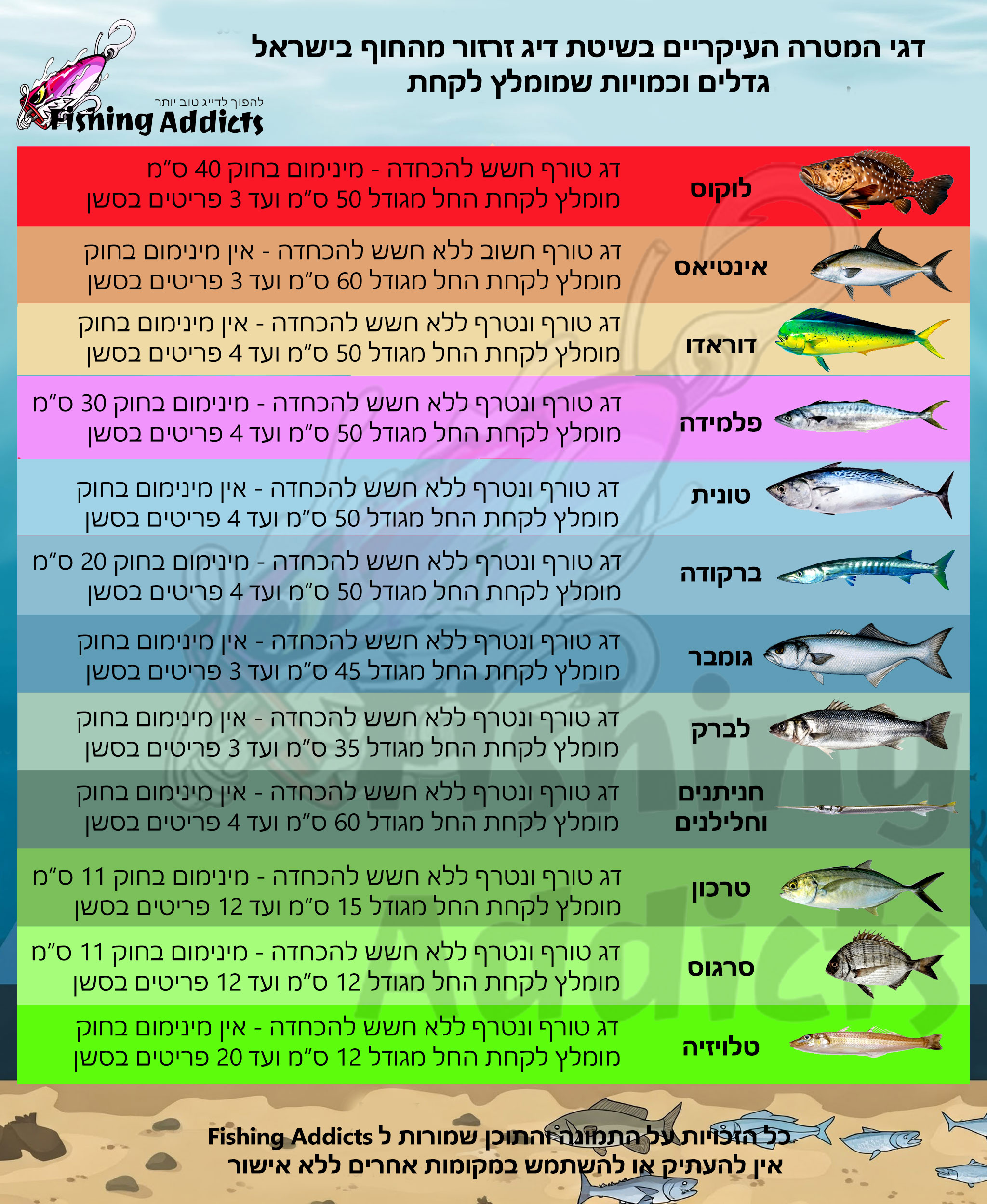 דגי המטרה העיקריים בדיג זרזור מהחוף בישראל – מדריך גדלים וכמויות מומלצות
