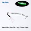הכירו את Jackson Metal Effect [Stay Fall], ג'יג מתכת חדשני ופורץ דרך המיועד לדיג טורפים במים מלוחים ומתוקים. ג'יג זה פותח במיוחד כדי לספק אפקט נפילה ייחודי, המדמה דג פצוע ומושך דגים טורפים ממרחקים.