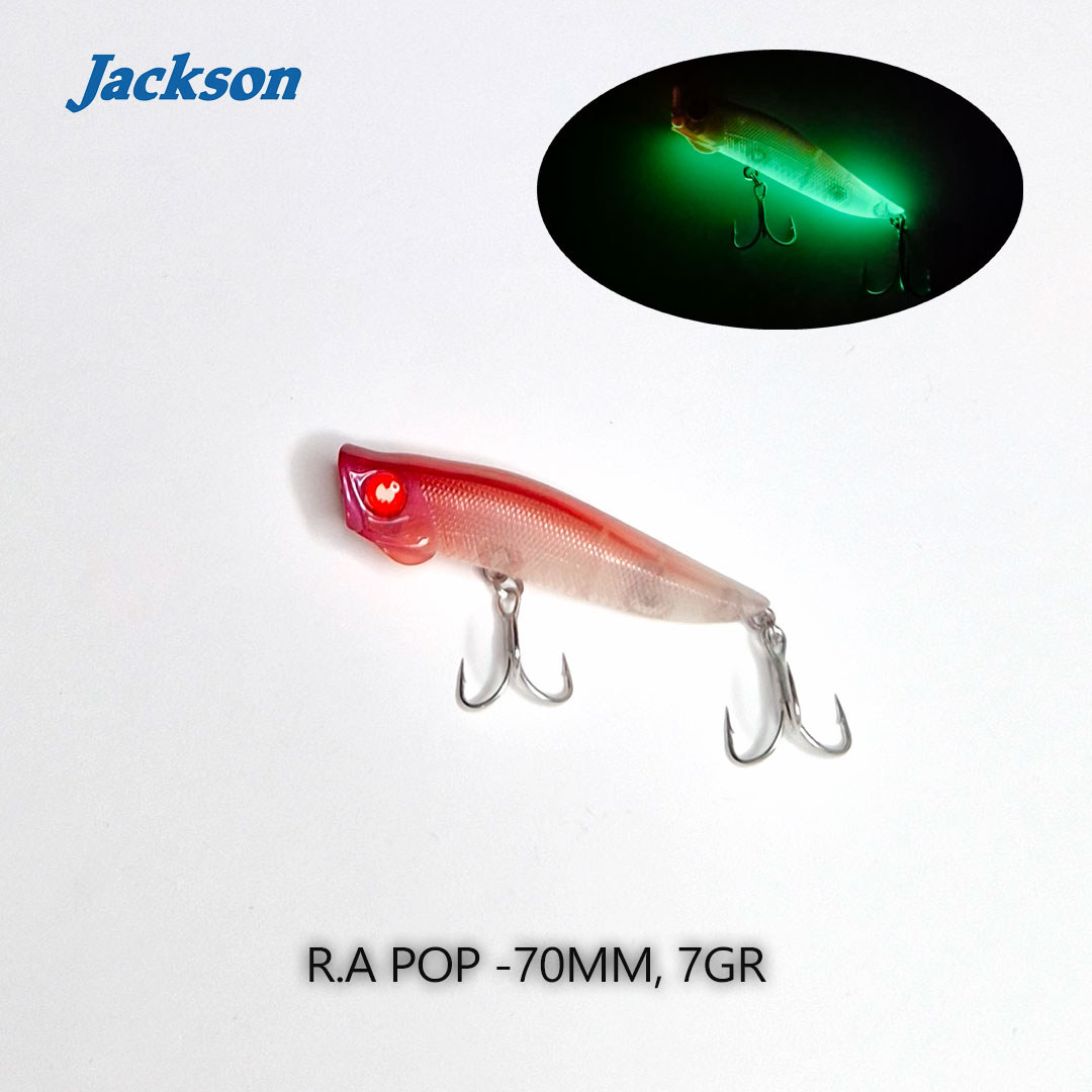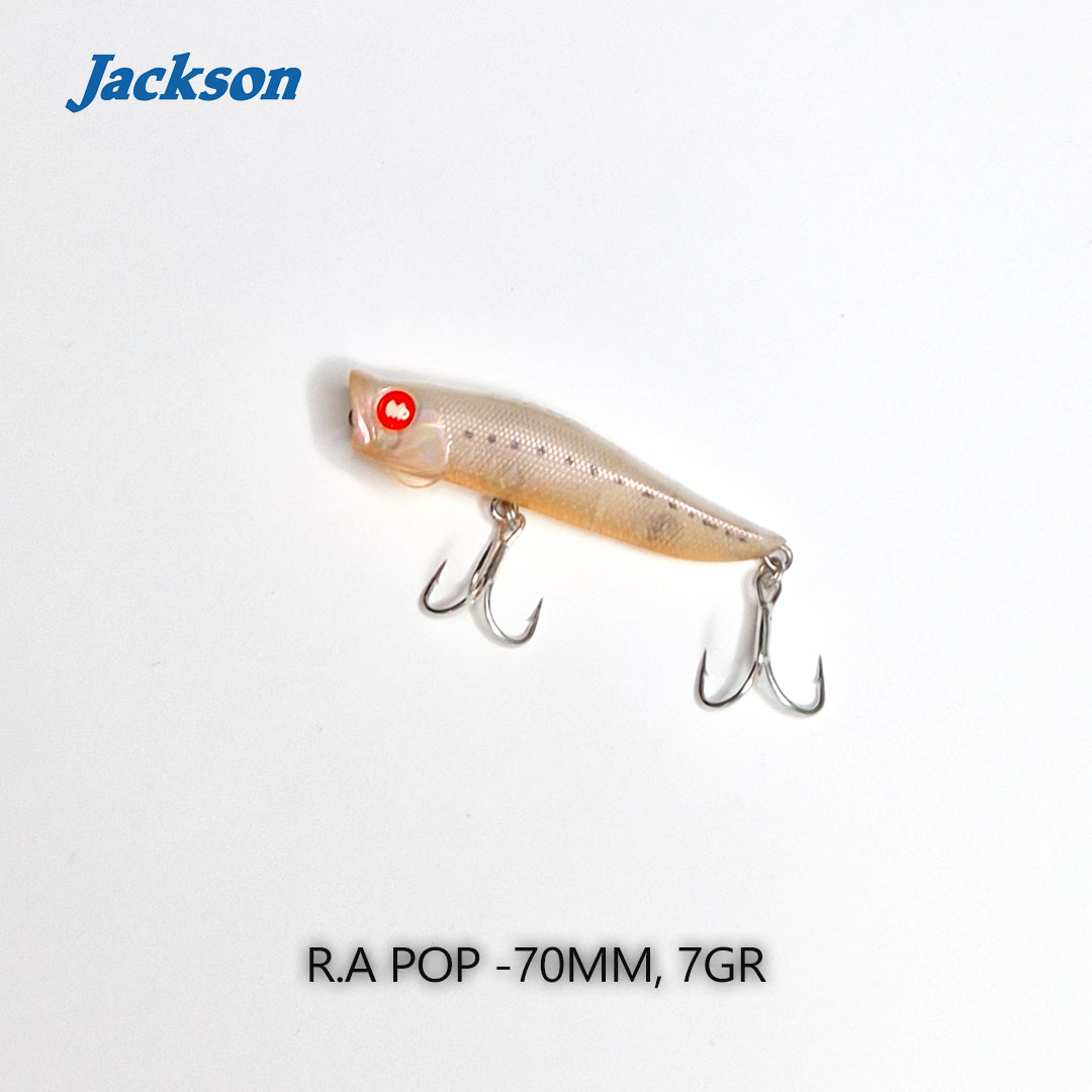 הכירו את ה-Jackson R.A POP – פופר שנחשב לאחד הכלים היעילים והמוערכים ביותר בעולם לדיג "טופ-ווטר" (Top Water) עדין ומתוחכם. חברת Jackson היפנית פיתחה את הדגם הזה במקור עבור דיג במים רדודים, אך בישראל הוא הפך ל"נשק הסודי" של דייגי ה-Ultra Light וה-Light הז'רז'ור, בזכות יכולתו לייצר תקיפות אגרסיביות גם כשהים נראה "מת". במשקל של 7 גרם ואורך של 70 מ"מ, ה-R.A POP הוא הוכחה לכך שדברים טובים מגיעים באריזות קטנות. זהו דמוי שפשוט אי אפשר להשאיר בבית בימים של ים פלטה או כשרואים רדיפות על פני המים.